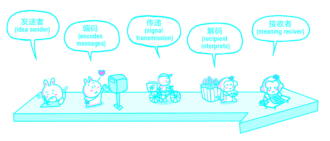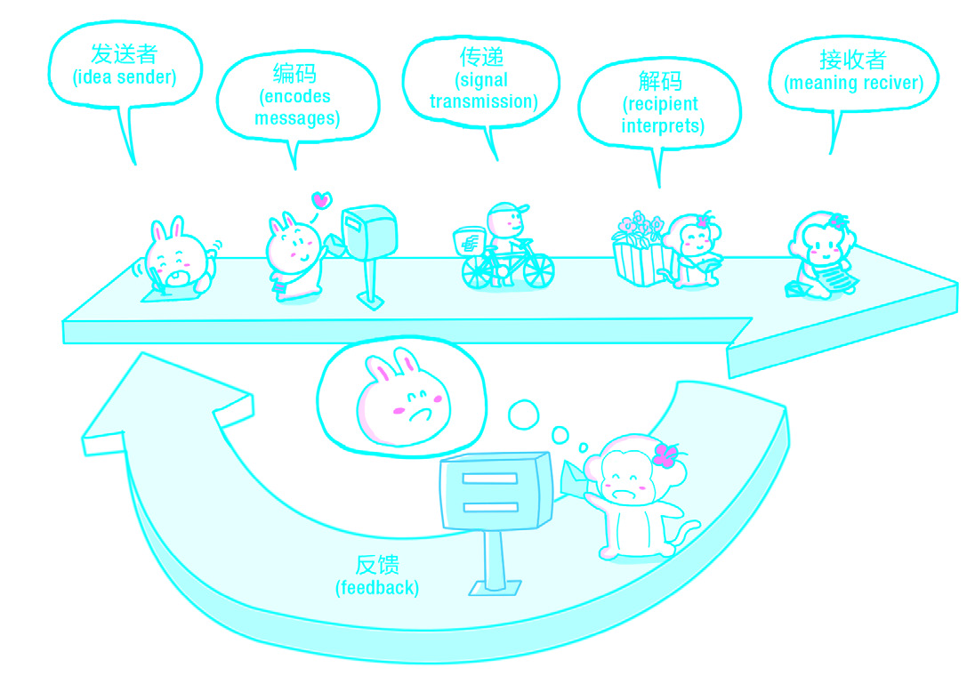 沟通在很多时候并不像看起来那么容易。事实上,在这个过程中,人们常常会因为某个参与者而导致“有效沟通根本不可能达成”。更具体一点说,如果甲与乙两个人需要沟通,过程是:甲将他的想法用他的语言表达出来(即“编码”),乙用自己的方式去理解甲的语言(即“解码”),然后反过来再次进行。此过程可能重复数次。
