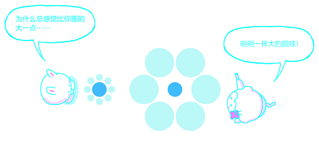 举个简单的例子。下面两个深色的圆哪一个更大呢?