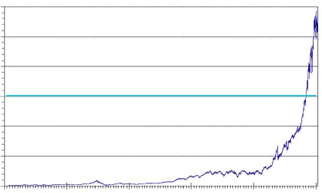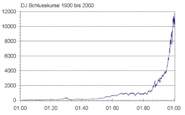 其实,上图并不是 Amazon 的营收曲线(我是故意的),而是道琼斯指数过去一百年的增长曲线: