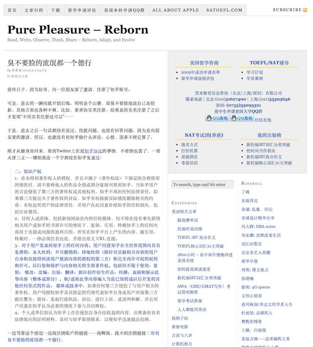 绝对不删除任何评论,在那几年里给我带来了另外一个好处:性情真的淡定起来,开始变得很难生气或者难过。